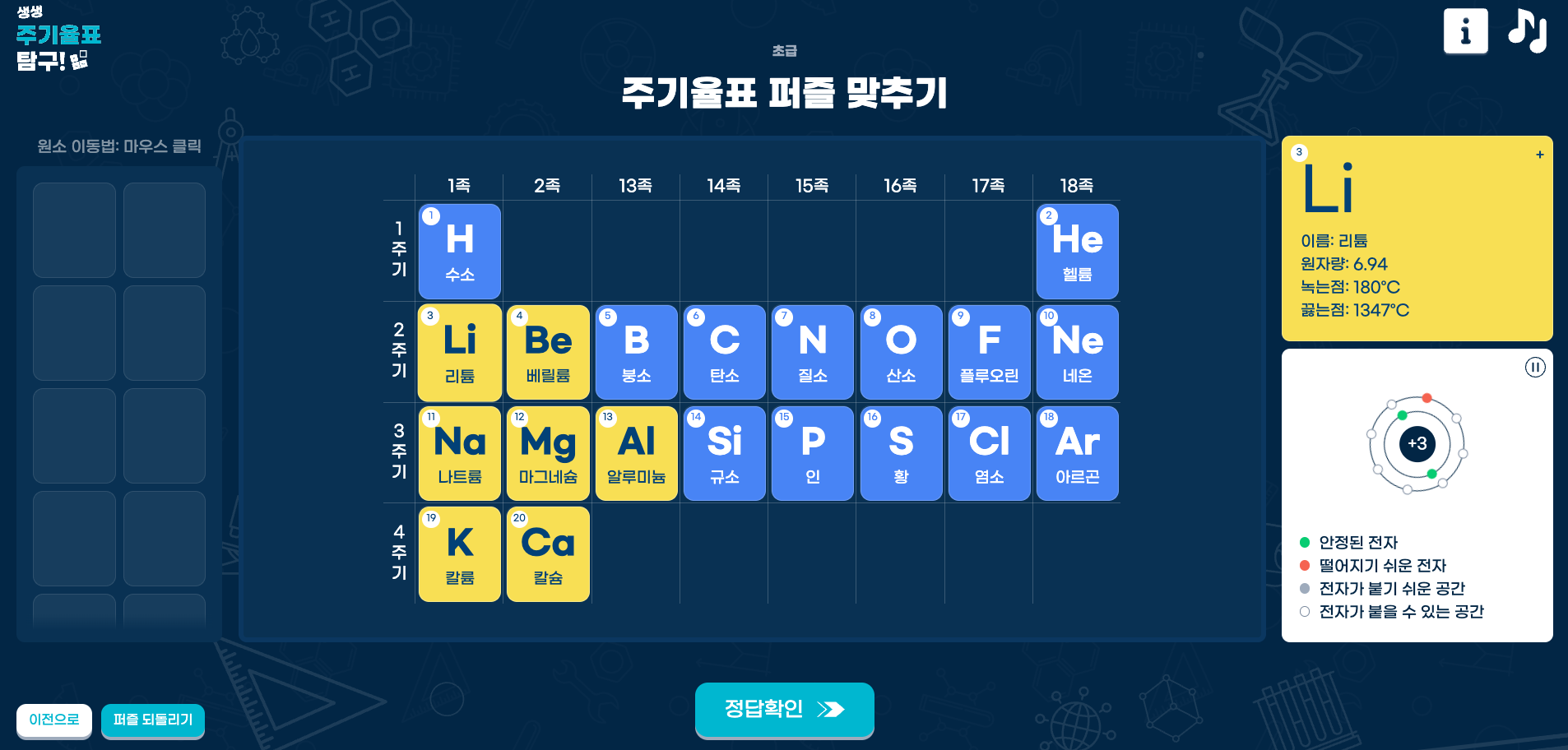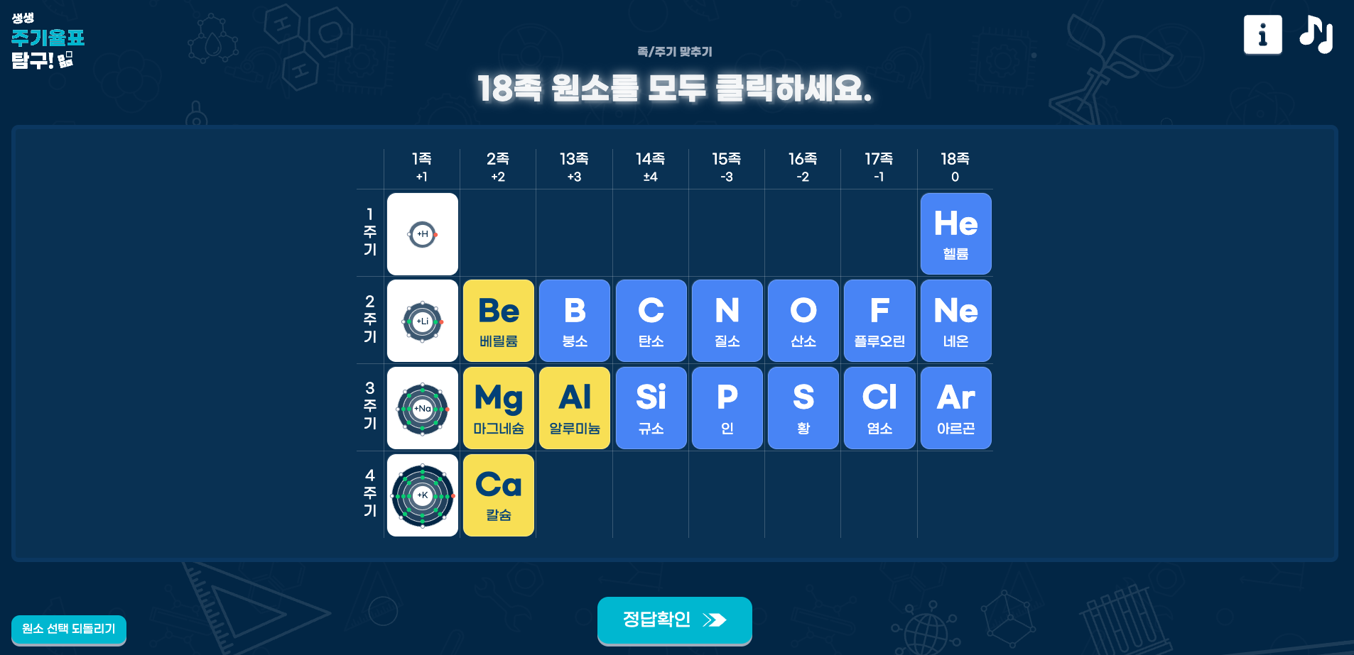 ⭘난이도별 주기율표 퍼즐 미션을 통해 20번까지 원소 학습