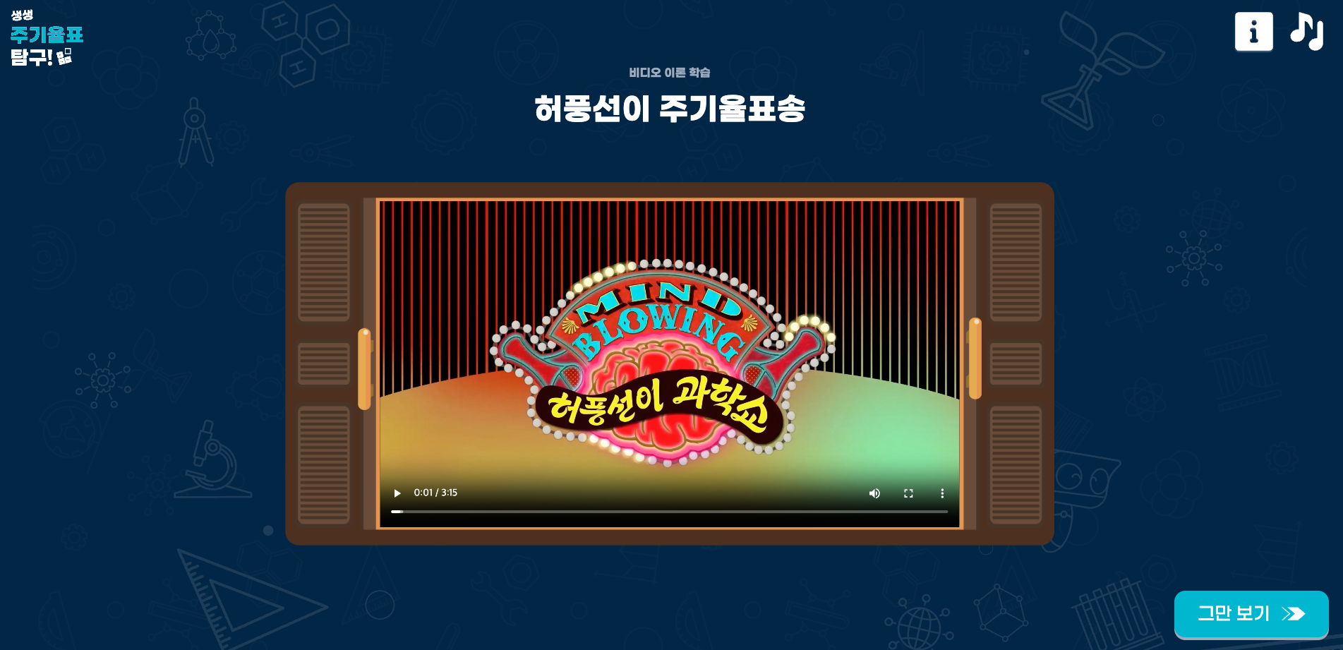 ⭘주기율표 노래를 들으며 반복적으로 노출되는 원소이름과 번호를 익힐 수 있습니다.