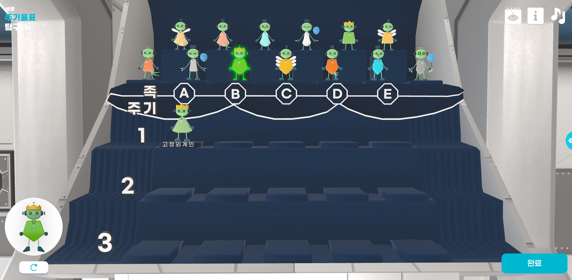 ‘생생 주기율표 탐구!’ 가상실험실에서 허풍선이 주기율표송으로 주기율표의 원리와 원소 규칙을 학습한 후, 20번까지의 주기율표 퍼즐을 난이도별로 완성할 수 있습니다. 또한 족과, 주기 성질을 학습한 후 화학결합의 원리를 이해하고 나만의 외계인 주기율표 만들기를 통해 규칙성을 설명할 수 있습니다. 라비(Lavi)의 안내에 따라 각 단계의 미션을 도전하면서 주기율표 성질을 이해해볼까요?