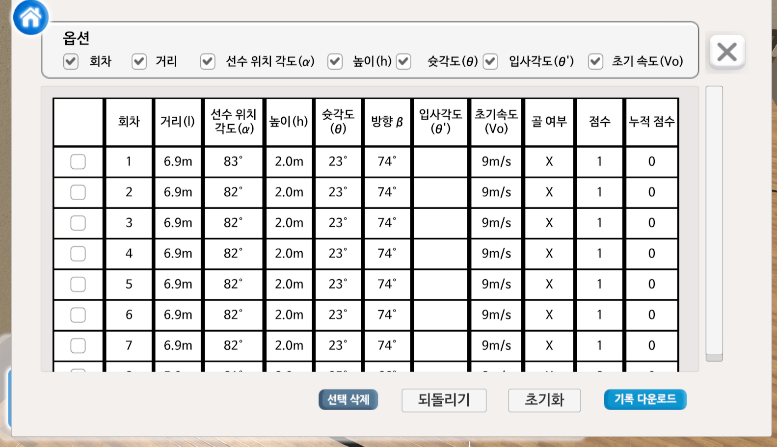 2) 플레이어의 위치, 거리와 슛 설정값에 따라 슛을 시도해 볼 수 있습니다.