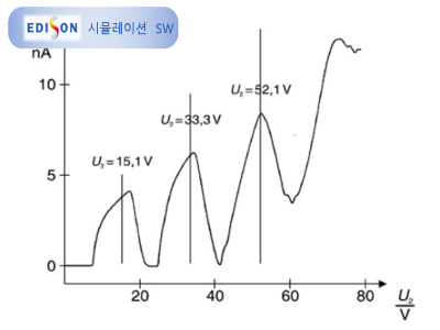 1914년도 초에 제임스 프랑크와 구스탚 헤르츠는 수은기체를 통과하는 전자는 계단형으로 그 운동 에너지의 손실이 발생한다는 것과 그에 해당하는 수은의 자외선 (λ = 254 nm)이 방출된다는 것을 발견하였다.